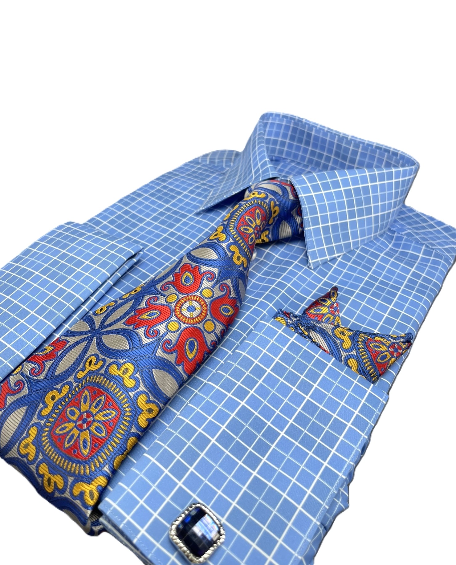 -Shirt combo complete with a matching tie , cufflinks  and handkerchief