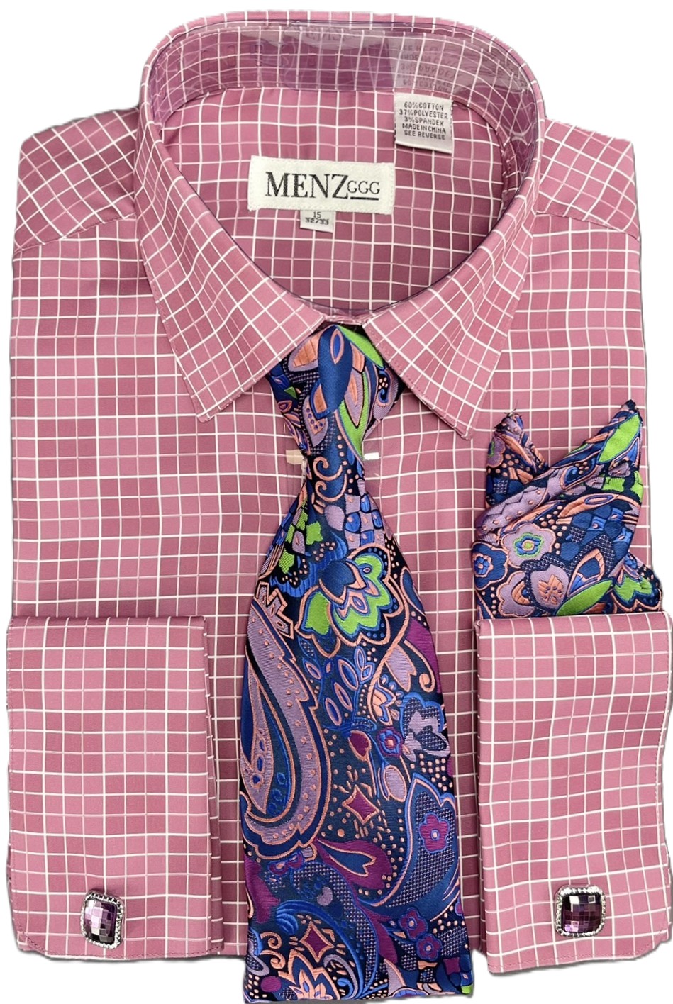 -Shirt combo complete with a matching tie , cufflinks and handkerchief