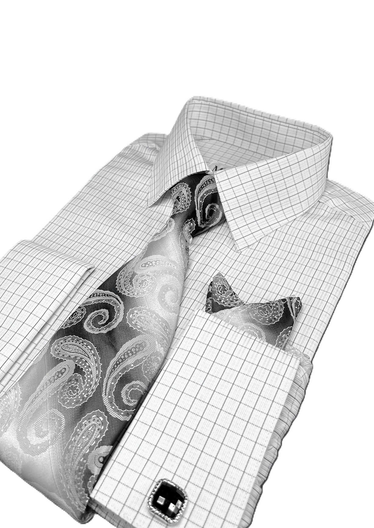 -Shirt combo complete with a matching tie , cufflinks and handkerchief