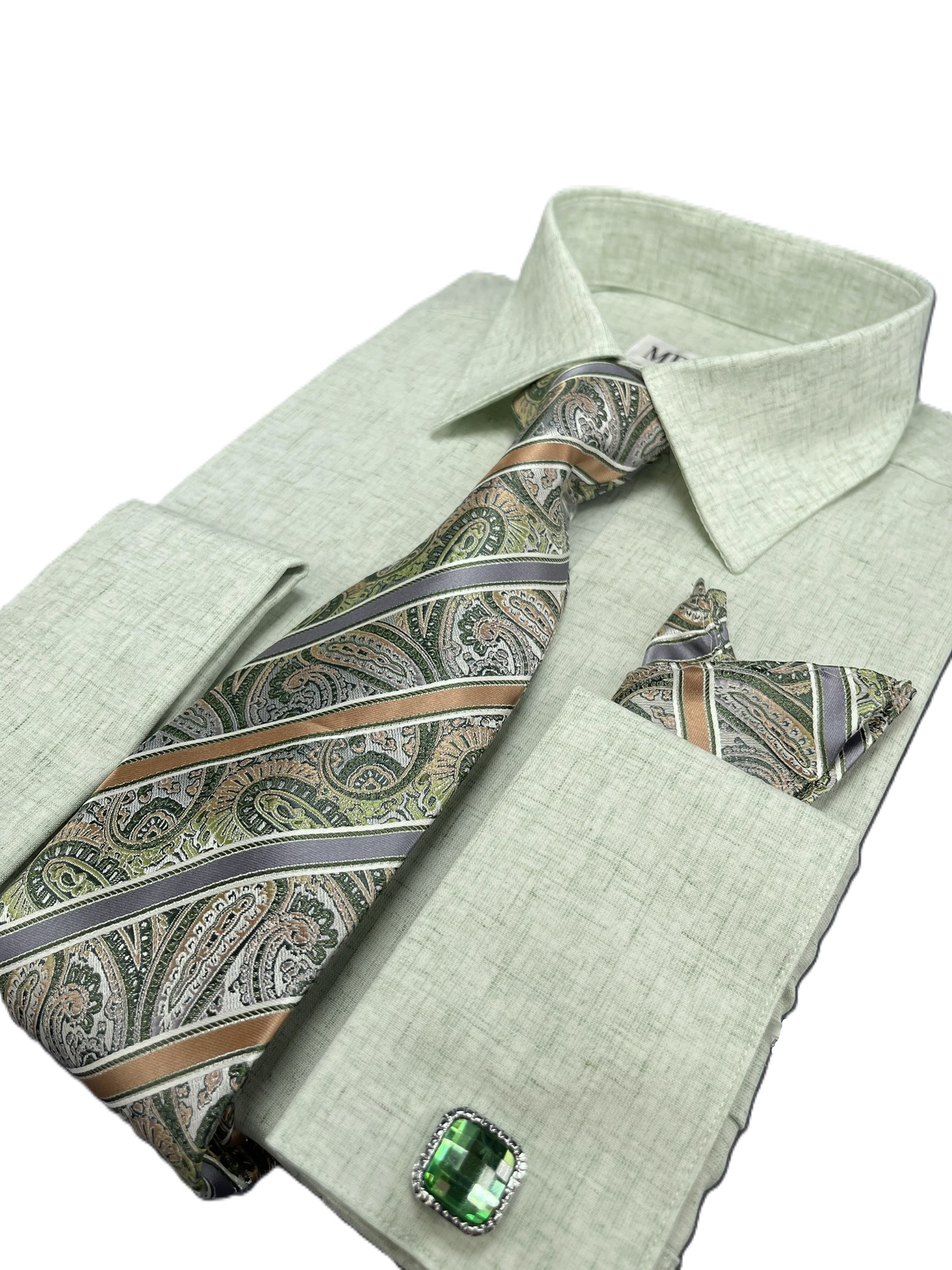 -Shirt combo complete with a matching tie , cufflinks  and handkerchief