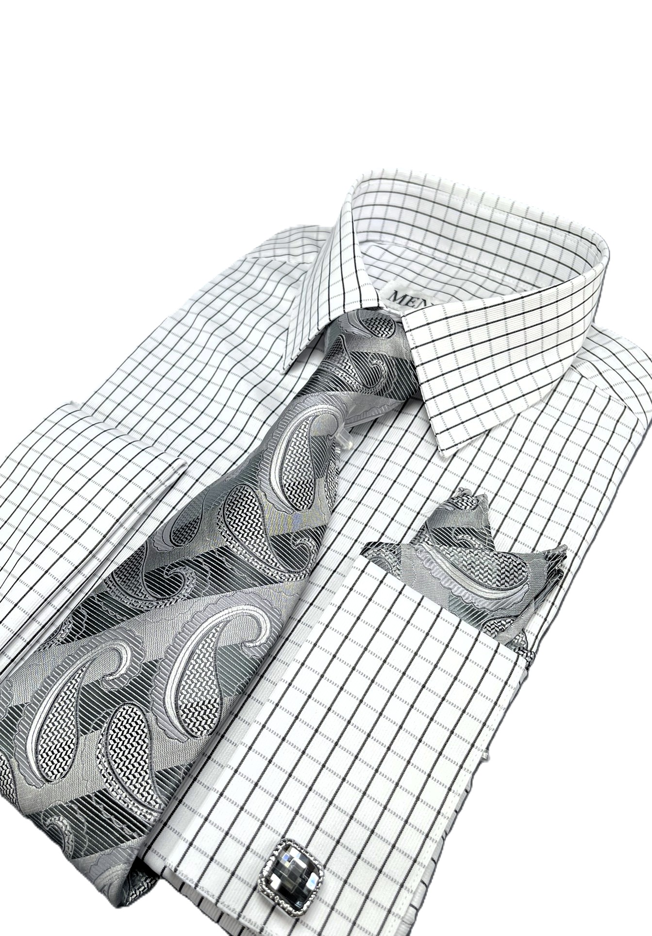 -Shirt combo complete with a matching tie , cufflinks  and handkerchief